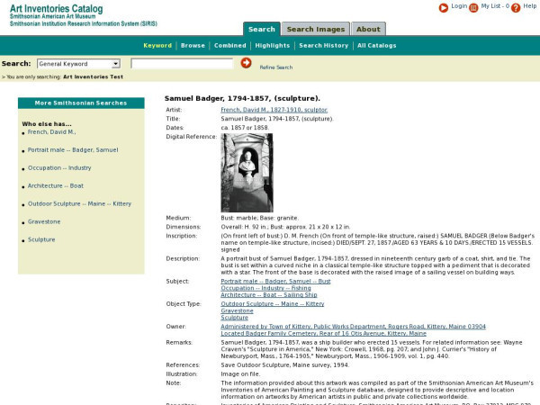 Debug Score BreakDown for Samuel Badger, 1794-1857, (sculpture)